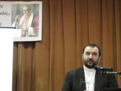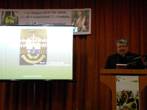 Február 10-én délután a nőszövetség dísztermében Márton Áron boldoggá avatási ügyének posztulátora, dr. Kovács Gergely, a Kultúra Pápai Tanácsának irodavezetője tartott előadást Szentnek lenni nem kevesek előjoga, hanem mindenki hivatása címen. A Ferenc pápától vett címmel azt kívánta sugallni az előadó, hogy Márton Áron a mindennapos helytállásban, a sokszor fárasztó apróságok következetes megtételében vált szentté, nem kiemelkedő, hősies dolgokat kell tehát keresni annak sem, aki őt követni akarja, hanem azt kell megtalálni, itt és most, ma mindenki számára mi a teendő. Éppen ezért Márton Áron kolozsvári korszakáról beszélt, abból emelt ki olyan részleteket, amelyekben egy-egy ma is aktuális tanítás rejlik. Az előadó kiemelte: az a kor sem volt vidámabb és könnyebb, mint a mai: nehéz háború után, kisebbségi, teljesen új helyzetben, gazdasági válság kellős közepén: Márton Áron mégsem siránkozott és panaszkodott, hanem azt kereste, mit lehet a sok lehetetlenség között megtenni, s azt mindig bátran és következetesen meg is tette, nem keresett kibúvót, kényelmet, nem mások tetszésére törekedett. Kovács Gergely arra biztatta a hallgatóságot, hogy Márton Áront tettekben kövessék.