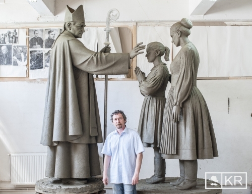 Elkészült Sárpátki Zoltán szobrászművész műtermében a Csíkszereda felújított Szabadság terére szánt teljes alakos Márton Áron-szoborkompozíció agyagváltozata. Az alkotást gipszből, majd bronzból kell kiönteni ahhoz, hogy elnyerje végleges alakját és helyére kerüljön.