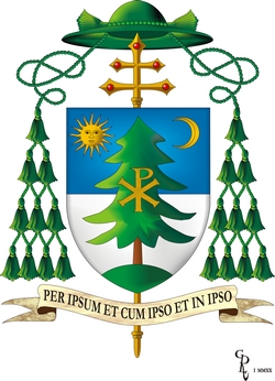 A húsz zöld bojt és a dupla kereszt az érseki címerek jellemzői. Az aranyszínű kereszt öt piros drágakője az Úr Jézus sebhelyeinek jelképe.
