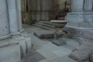 A székesegyház északi oldalán a szentély felé haladva a kereszthajó kiugrásának románkori szobrait vehetjük szemügyre, majd az északi mellékapszis következik.
