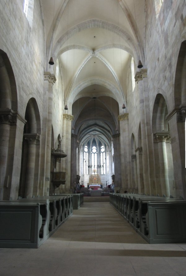 A kereszthajó a II. székesegyház részeként épült a 12. sz. elején. Négyezetének boltíveit valószínűleg már csak a tatár pusztítás után fejezték be. A déli szárára támaszkodó késő románkori mellékapszisban állították fel a tordaturi római-kat. templomból származó középkori Mária-szobrot.