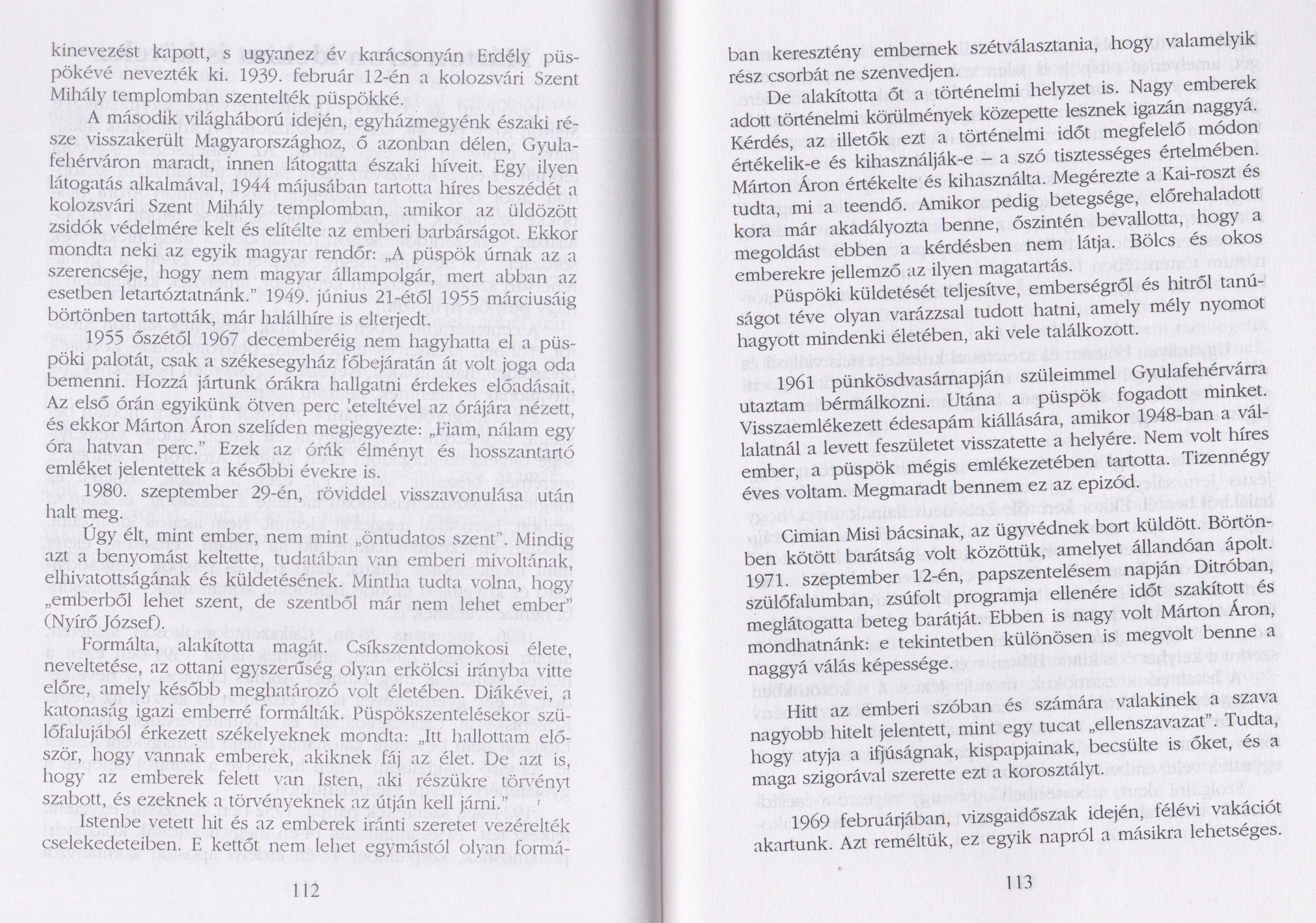 Dr. József MARTON, Áron Márton, Bischof von Siebenbürgen, Römisch-katholisches Erzbischöfliches Ordinariat Alba Iulia / Karlsburg 2002 (48 oldal, fedelén Márton Áron fényképével).