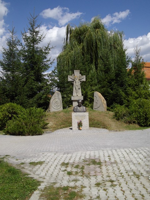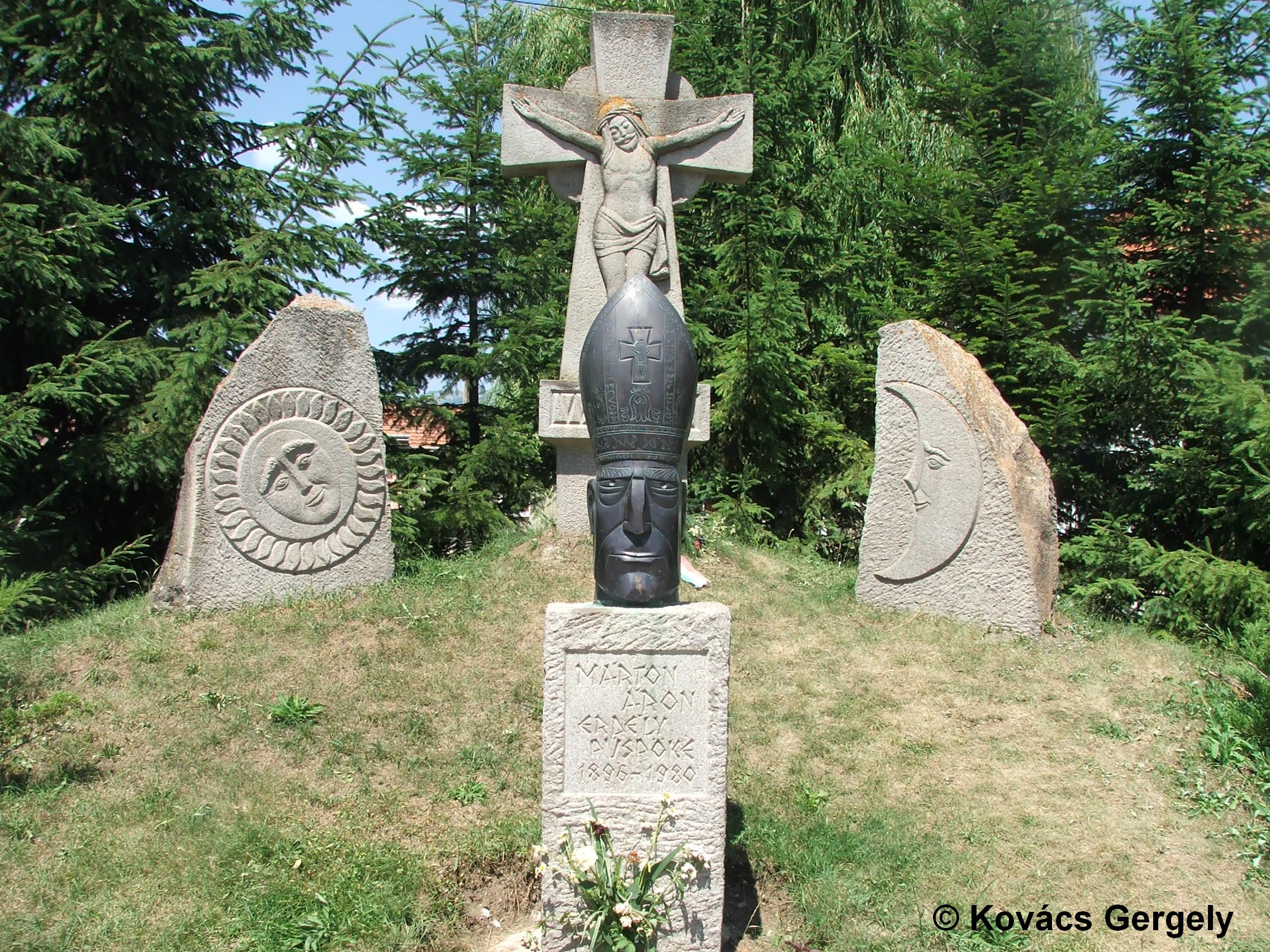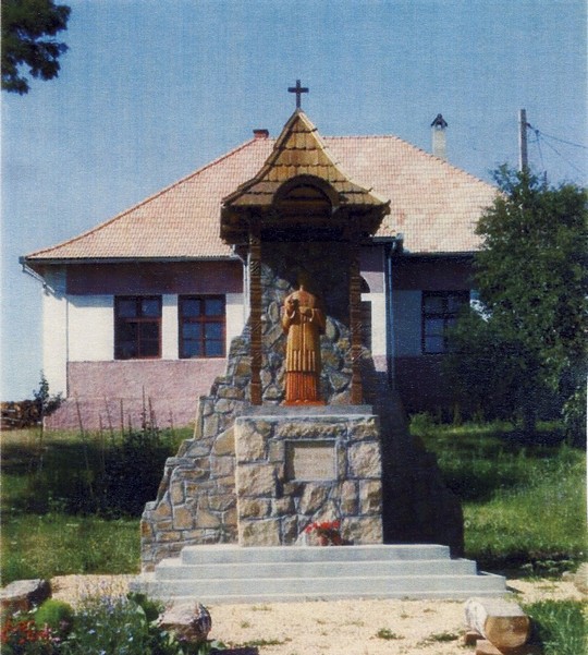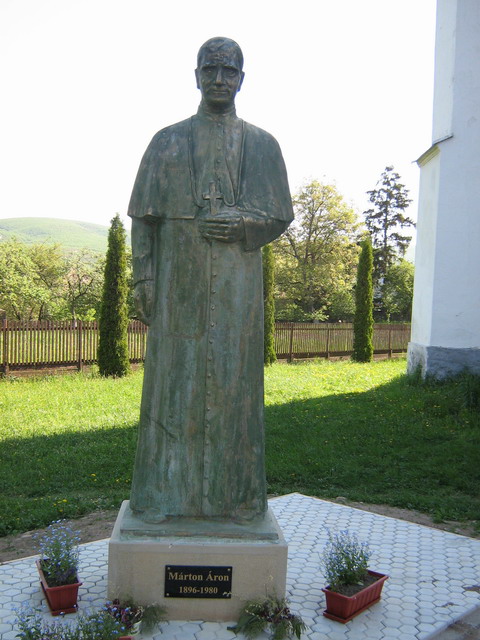 - 1996. augusztus 28-án a falu főterén Jakubinyi György érsek megáldja a püspök emlékmű-kompozícióját, a Budapesten élő kolozsvári Szervátius Tibor szobrász alkotását. A kompozíció összetevői: a püspök fejszobra, mosolygó kőfeszület, kövön nap és hold, a székely jelképek (a fejszobor mása a kolozsvári Szent Mihály plébánia udvarán az állandó Szervátius kiállításon is látható). Fényképek az emlékműről (2012. augusztus 8. előtt!): 1 2