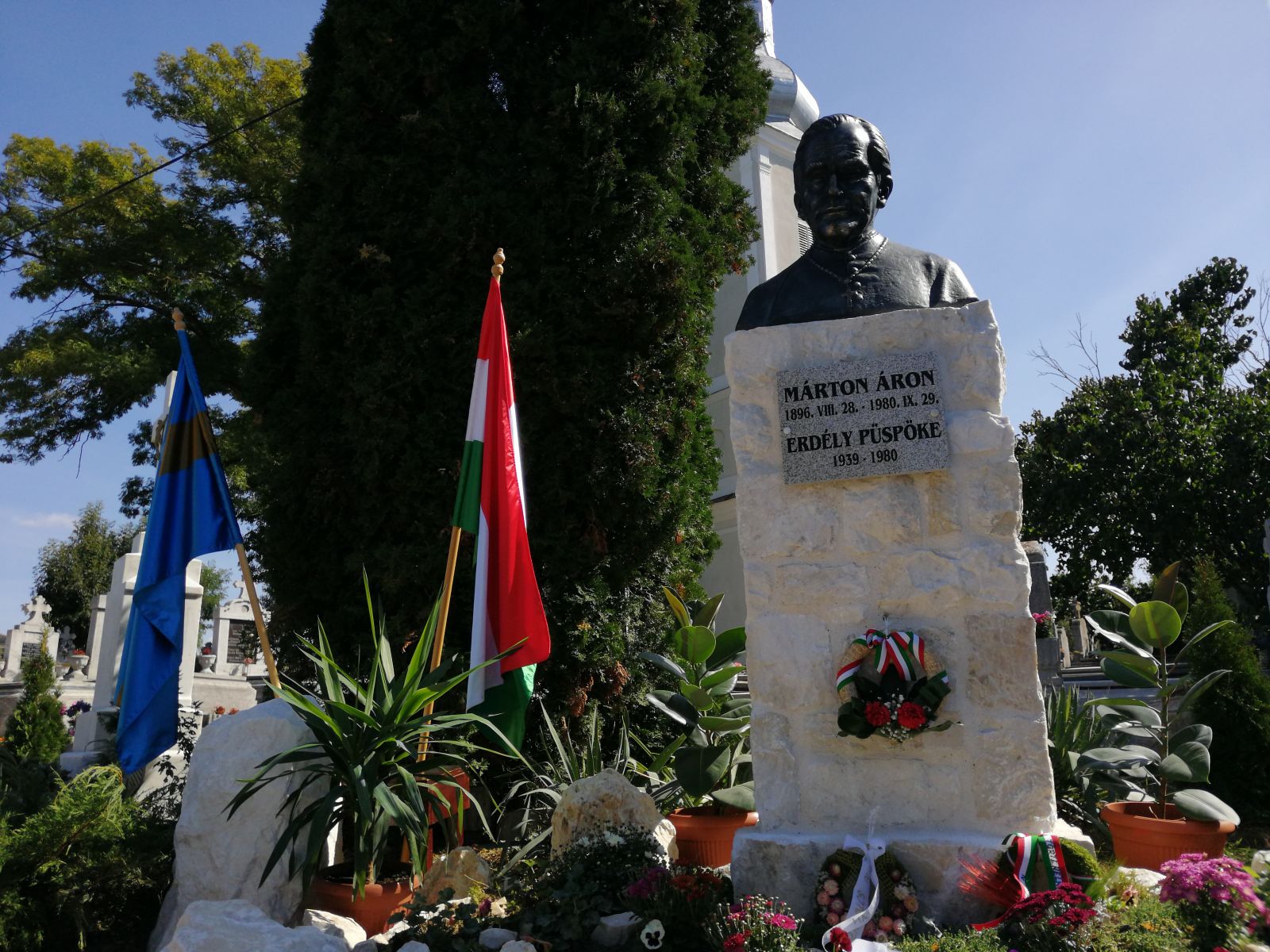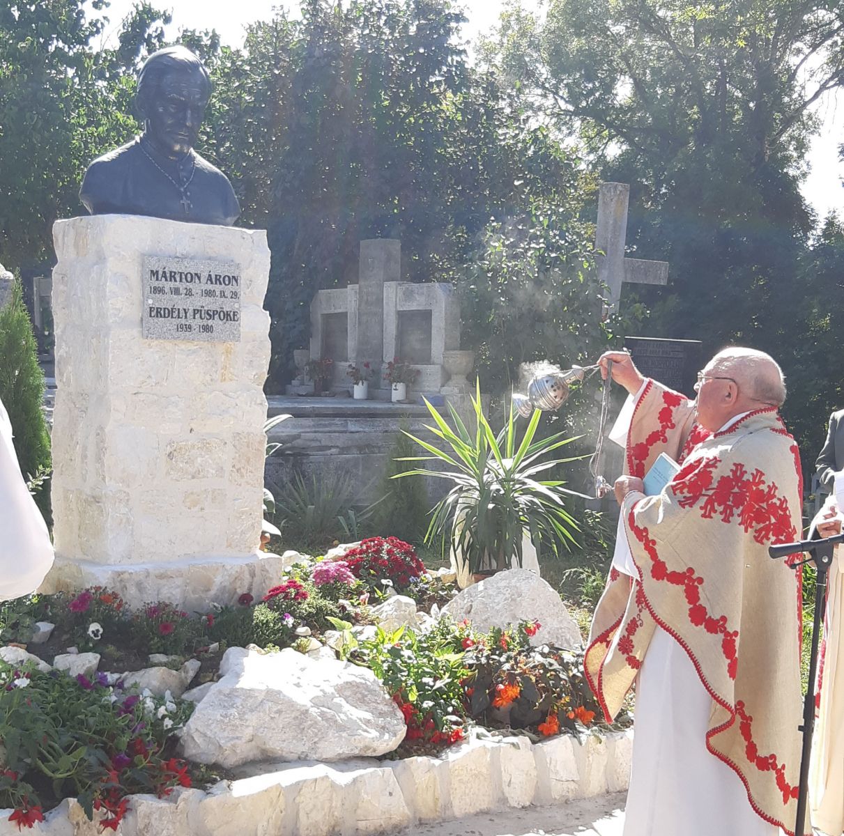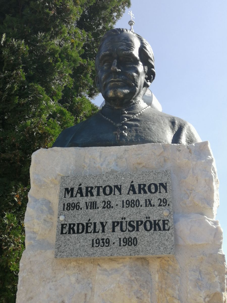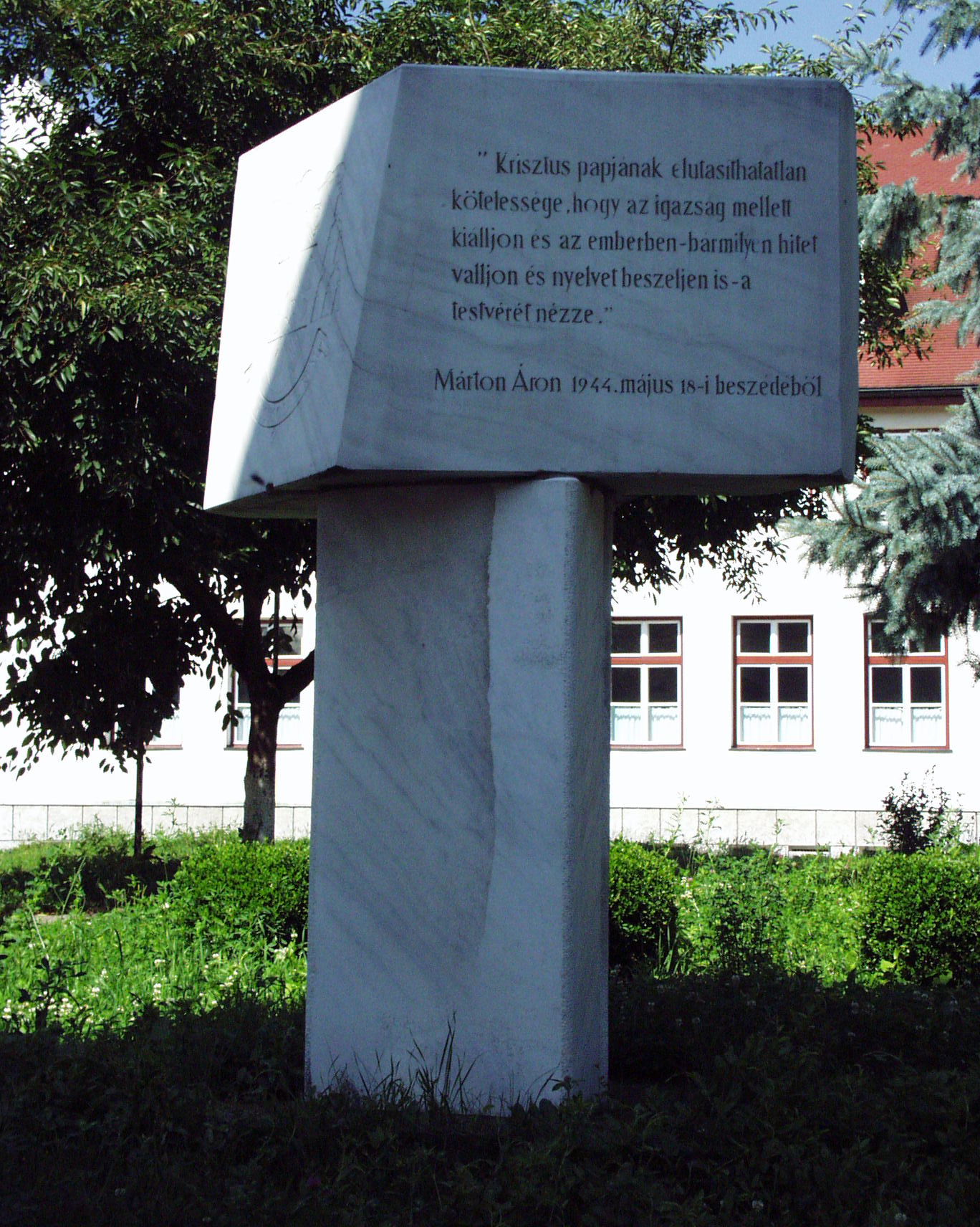 Az emlékmű szövege: MÁRTON ÁRON 1896-1980 Erdély püspöke, az igazság őre, az üldözöttek védelmezője, népének jó pásztora. Fényképek az emlékműről