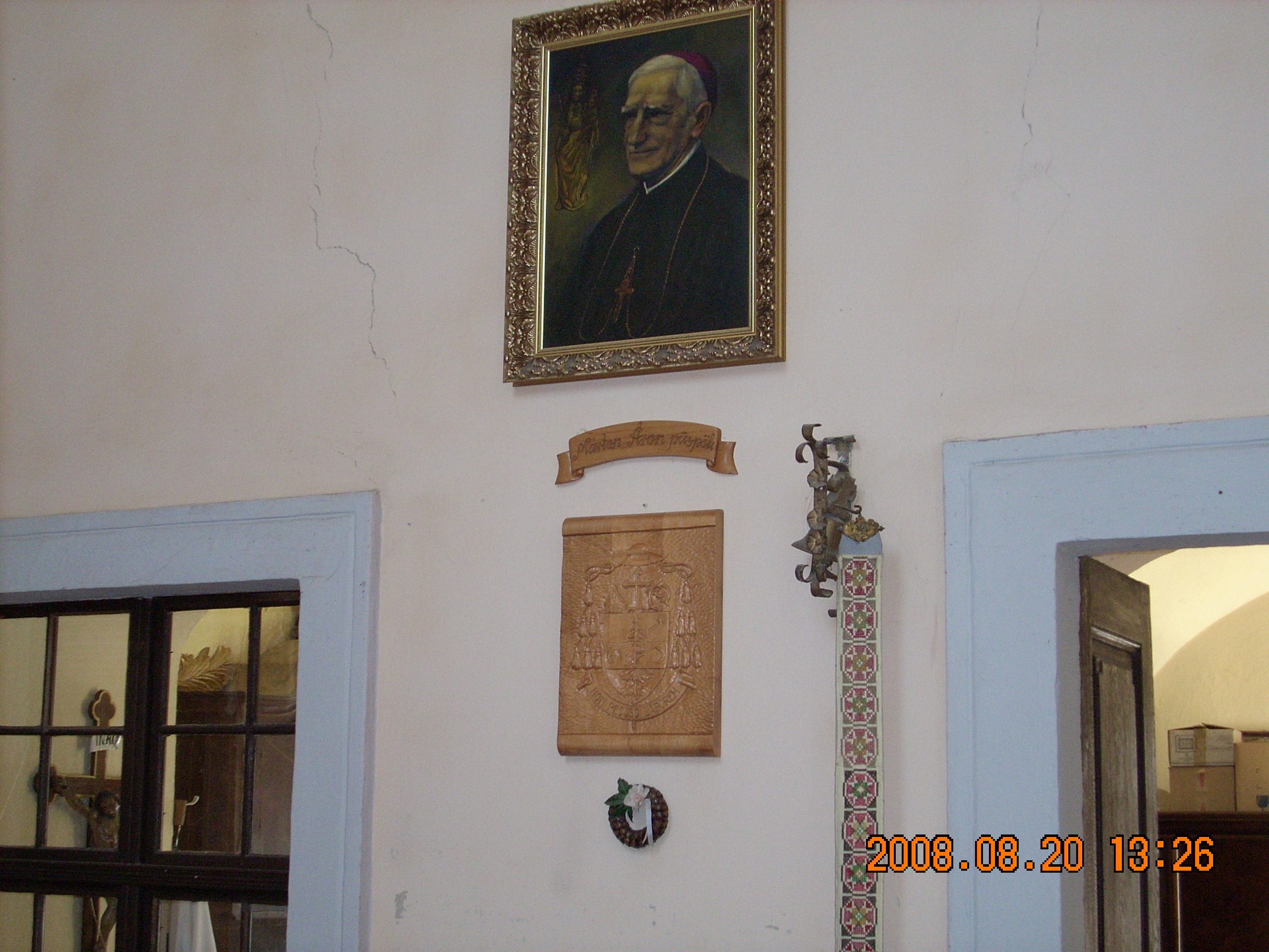 - 1983-tól (?) az új templom mellékkápolnájában látható Márton Áron képe, Péter Olga csíkpálfalvi festőművész alkotása. Alatta a püspök egyik pileolusa.