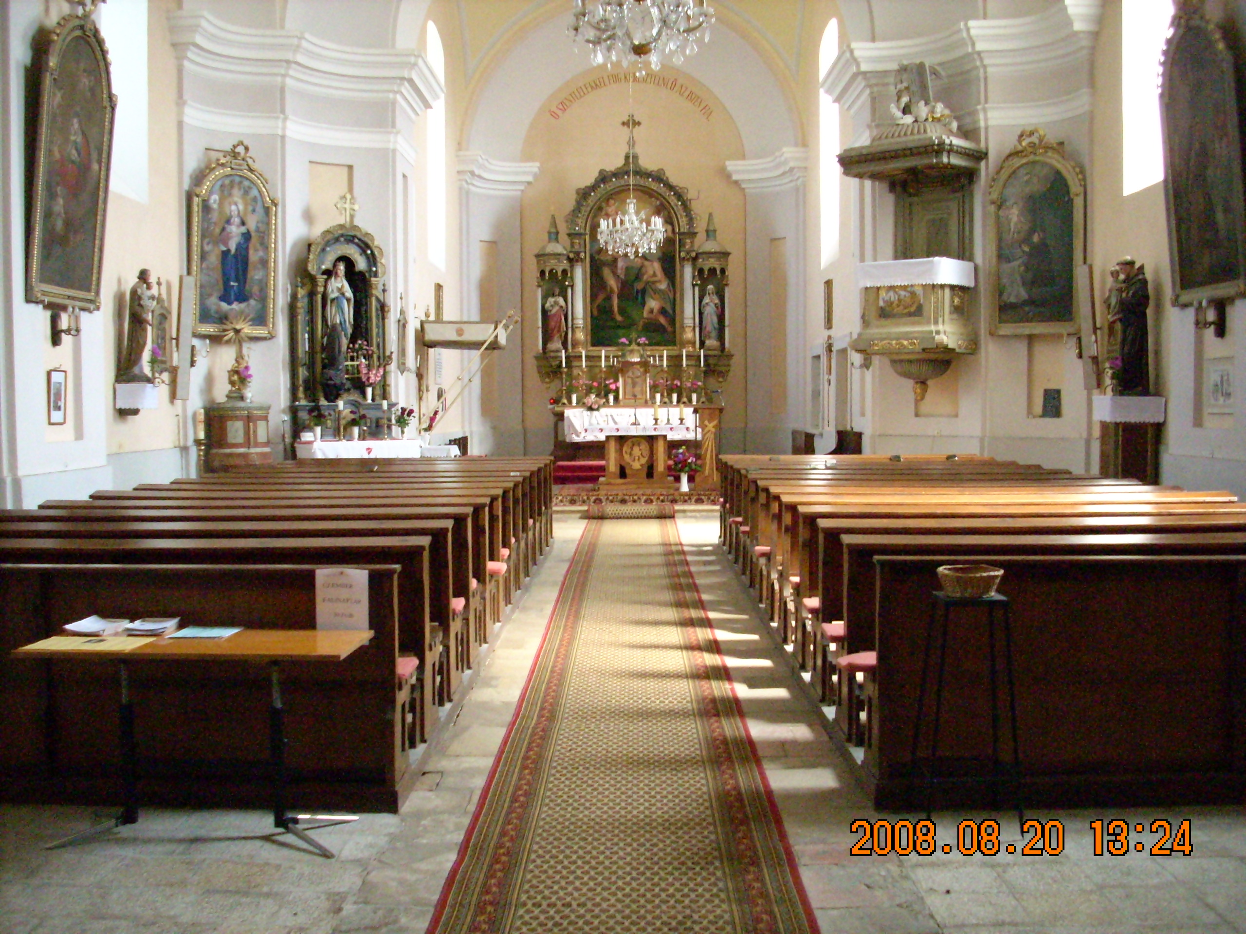 - A római katolikus templom szentélyében található Katona György erdélyi származású művész festménye, melyet 1998-ban, Földing Ernő festetett kántorizálásának 10. évfordulójára. A kép alatt felirat: "Márton Áron püspök", és Márton Áron püspök faragott címere, Nyulasi József pápai fafaragó munkája. Fénykép