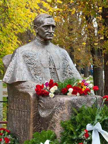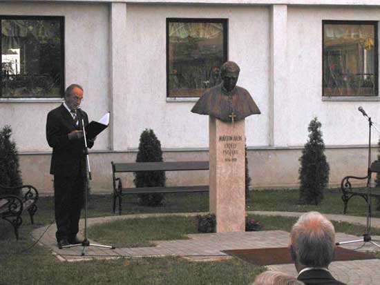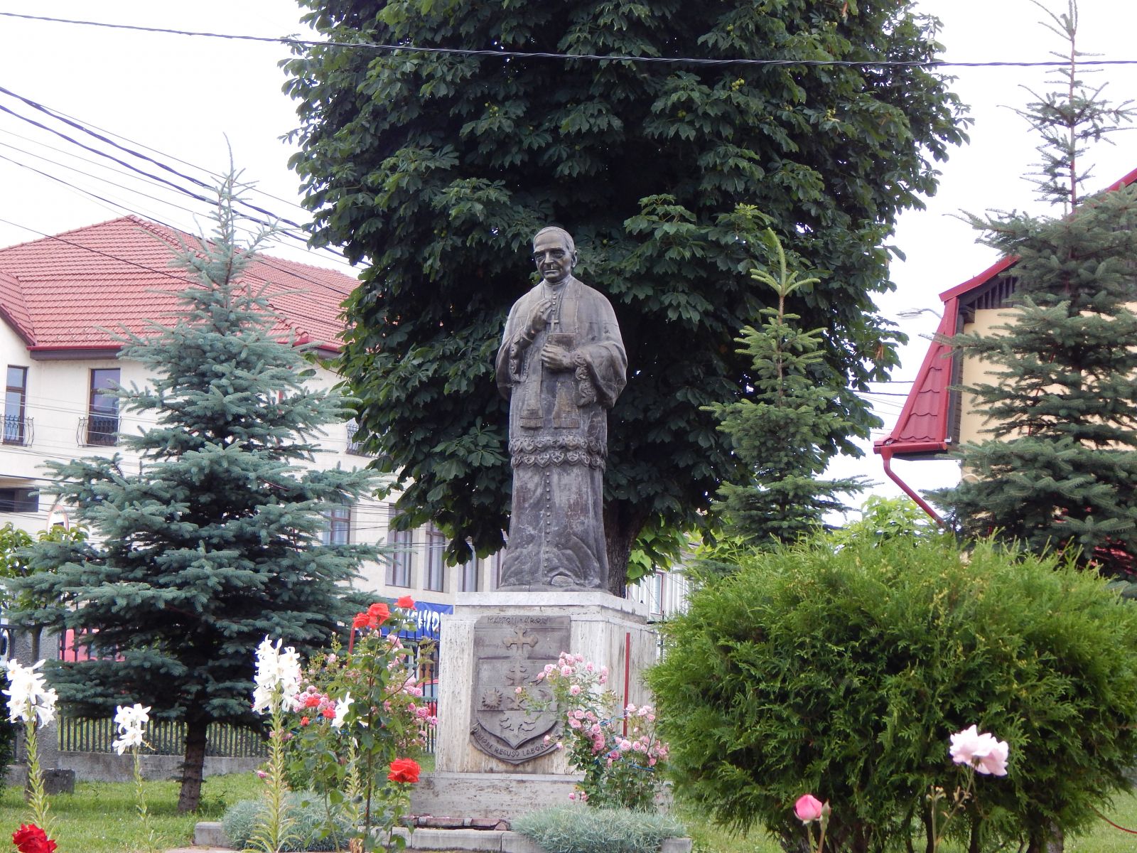 - 2009. február 28-án, szombaton, a 660 éves Szent Mihály templom kertjében, a főbejárattól balra, a szentmise után leplezi le Kovács Sándor főesperes-kanonok és Dr. László Attila alpolgármester a püspök szobrát. Bocskay Vince szovátai szobrászművész bronzba öntött alkotása, 80 centiméteres talapzaton 2.90 méter magas álló szoboralak. Jakubinyi György érsek áldotta meg. Részt vett Tamás József segédpüspök, Florentin Crihălmeanu kolozs-szamosújvári görög katolikus megyéspüspök, Szabó Árpád és Bálint Benczédi Ferenc unitárius püspökök, mintegy 60 pap, hívek nagy számban. Mátyás király lovasszobrán kívül, egész Kolozsváron ez az egyetlen köztéren elhelyezett, történelmi személyiséget ábrázoló, egészalakos, magyar vonatkozású szobor. (GPS - Lat: 46.770115, Lon: 23.589041) Fényképek a szoborról | Interjú a szobrásszal | Kapcsolódó anyagok 1 2 3 4 5 6 7 8