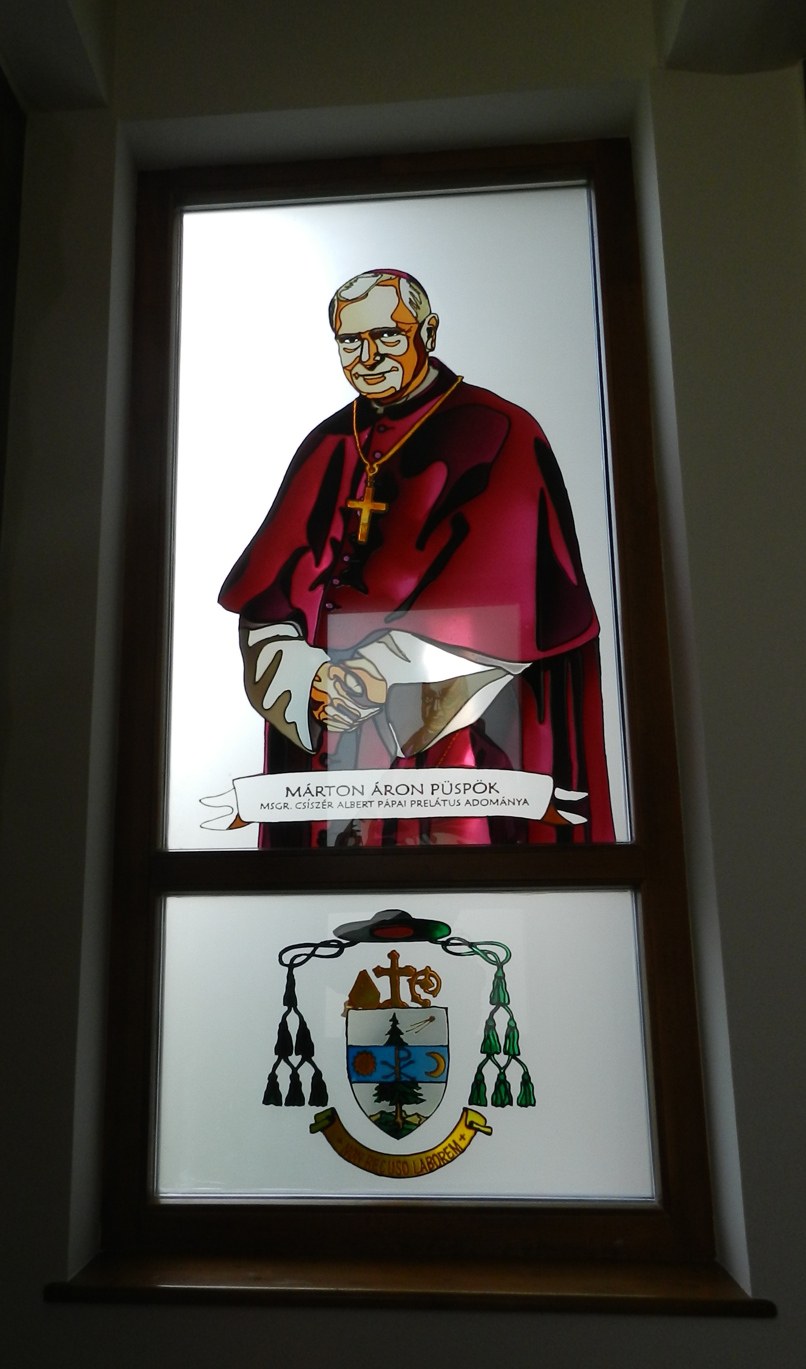 - A 2013/2014-es tanév kezdetével a Gróf Majláth Gusztáv Károly Teológiai Líceum (GMGK) kápolnájának egyik ablaka Márton Áront ábrázolja, püspöki címerével együtt. Mons. Csiszér Albert adománya.