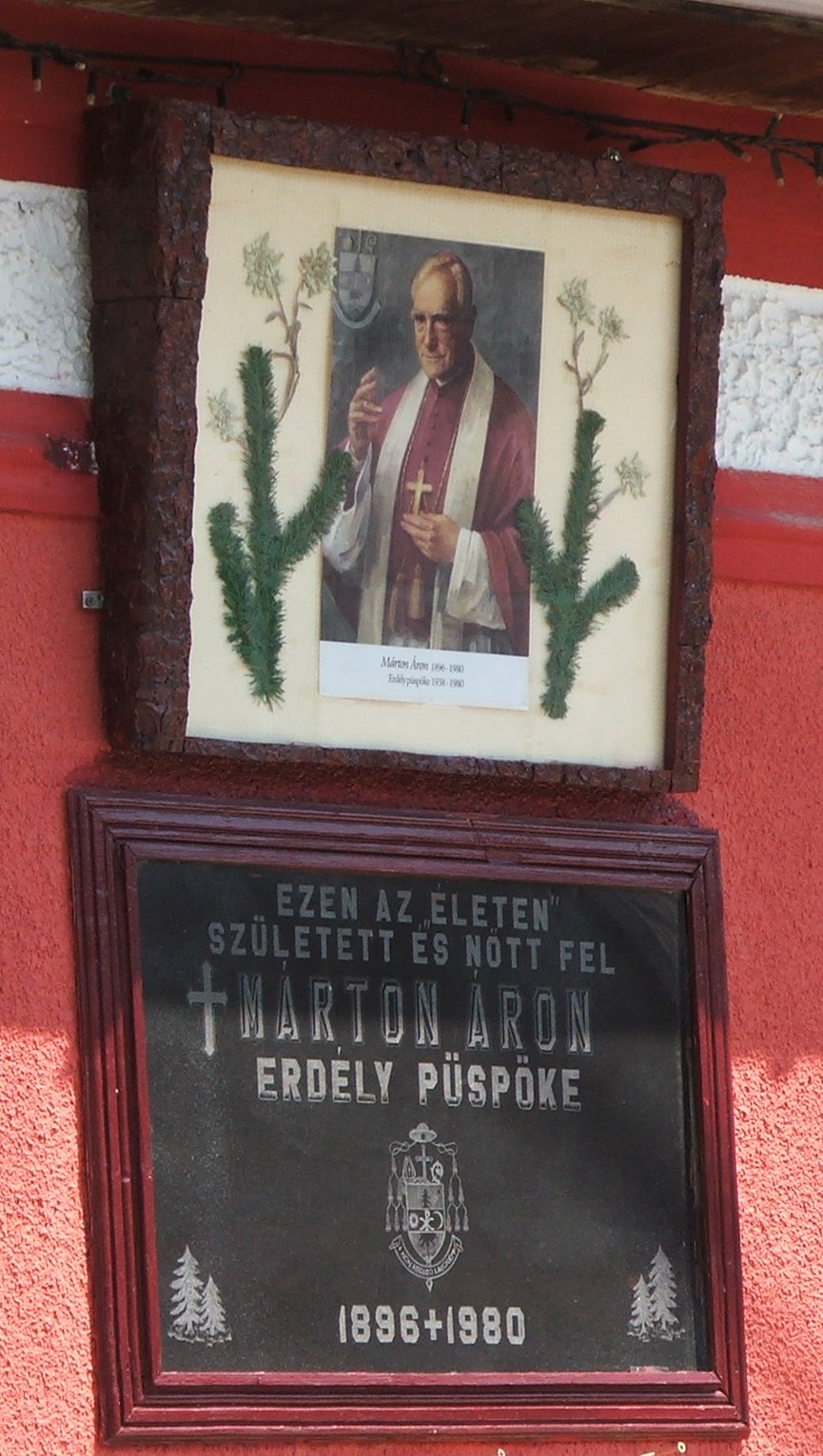 - A szülői ház helyén ma álló épületen fénykép őrzi a nagy püspök emlékét, alatta felirat: EZEN AZ "ÉLETEN" / SZÜLETETT ÉS NŐTT FEL / +MÁRTON ÁRON / ERDÉLY PÜSPÖKE / 1896+1980. | Fényképek: 1 2