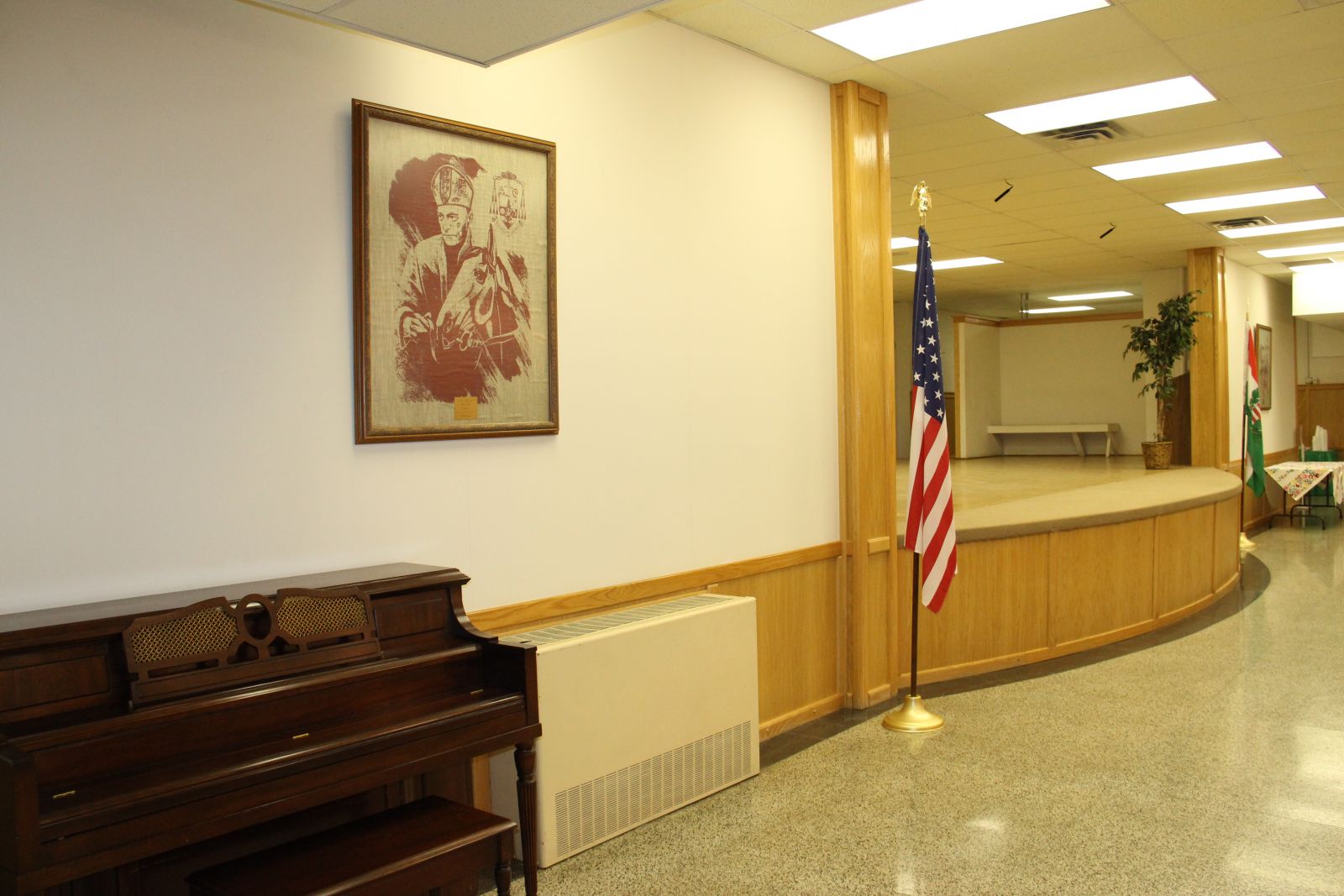 A detroiti magyar Szent Kereszt-plébánián található "márvány-terem" 1996 márciusában vette fel Márton Áron nevét, amikor a terem falán lévő feszületet Jakubinyi György gyulafehérvári érsek megáldotta. Fényképek: 1 2 3 4