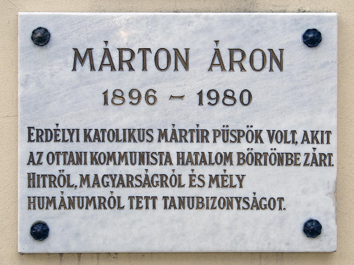Csíkszereda – Márton Áron utca (2007-ben a csíkszeredai Önkormányzat civil kezdeményezésre a George Cosbuc utca nevét Márton Áron utcára változtatta, mivel ez hangsúlyosan kötődik a püspök alakjához)
