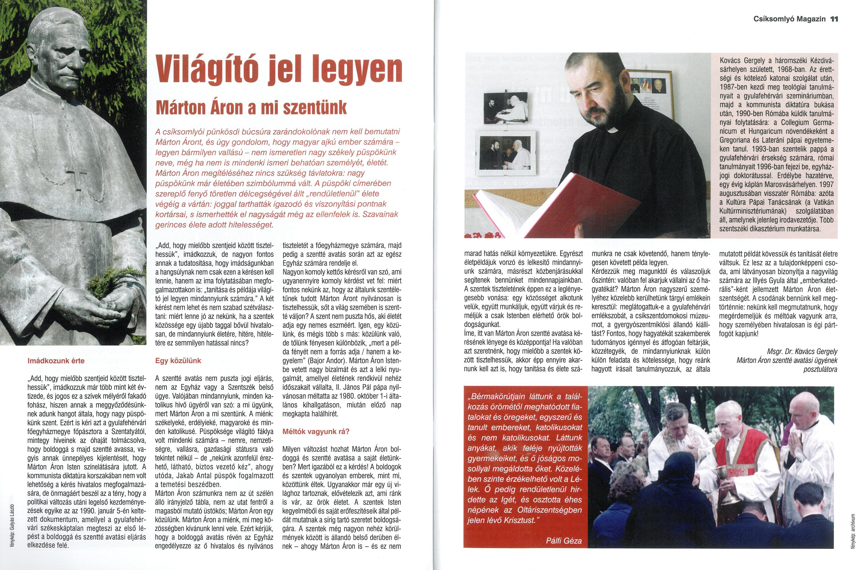 A csíksomlyói pünkösdi búcsúra zarándokolónak nem kell bemutatni Márton Áront, és úgy gondolom, hogy magyar ajkú ember számára – legyen bármilyen vallású – nem ismeretlen nagy székely püspökünk neve, még ha nem is mindenki ismeri behatóan személyét, életét. Márton Áron megítéléséhez nincs szükség távlatokra: nagy püspökünk már életében szimbólummá vált. A püspöki címerében szereplő fenyő töretlen délcegségével állt „rendületlenül” élete végéig a vártán: joggal tarthatták igazodó és viszonyítási pontnak kortársai, s ismerhették el nagyságát még az ellenfelek is. Szavainak gerinces élete adott hitelességet.