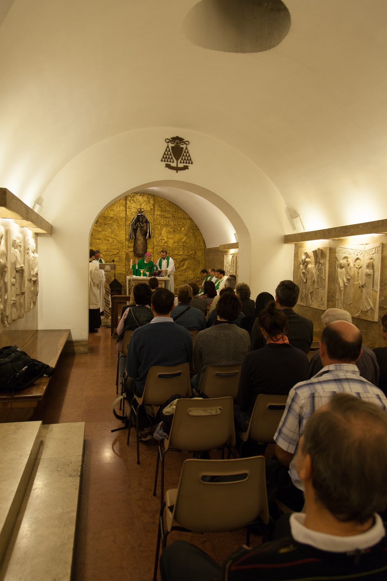 Márton Áronról magyar nyelvű szentmisében emlékeztek meg 2012. október 16-án reggel 8 órától a vatikáni Szent Péter-bazilika altemplomában található Magyarok Nagyasszonya kápolnában. A szentmise elején Mons. Németh László, az olaszországi magyar hívek főlelkésze köszöntötte a megjelenteket. Koncelebráltak továbbá: Mons. Kovács Gergely, Márton Áron boldoggá avatási eljárásának posztulátora, Arkadiusz Nocoń, az Istentiszteleti Kongregáció munkatársa, Tóth Tamás, a római Pápai Magyar Intézet rektora, a Rómában tanuló András István gyulafehérvári, Bodó Zoltán győri és Szöllősi Tibor szabadkai egyházmegyés papok. A diakónusi szolgálatot a váci egyházmegyés Halász Péter töltötte be. A szertartáson részt vett Győriványi Gábor, Magyarország Szentszéki nagykövete, valamint jelen voltak Rómában tanuló szeminaristák, az Isteni Megváltóról nevezett nővérek, zarándokok.