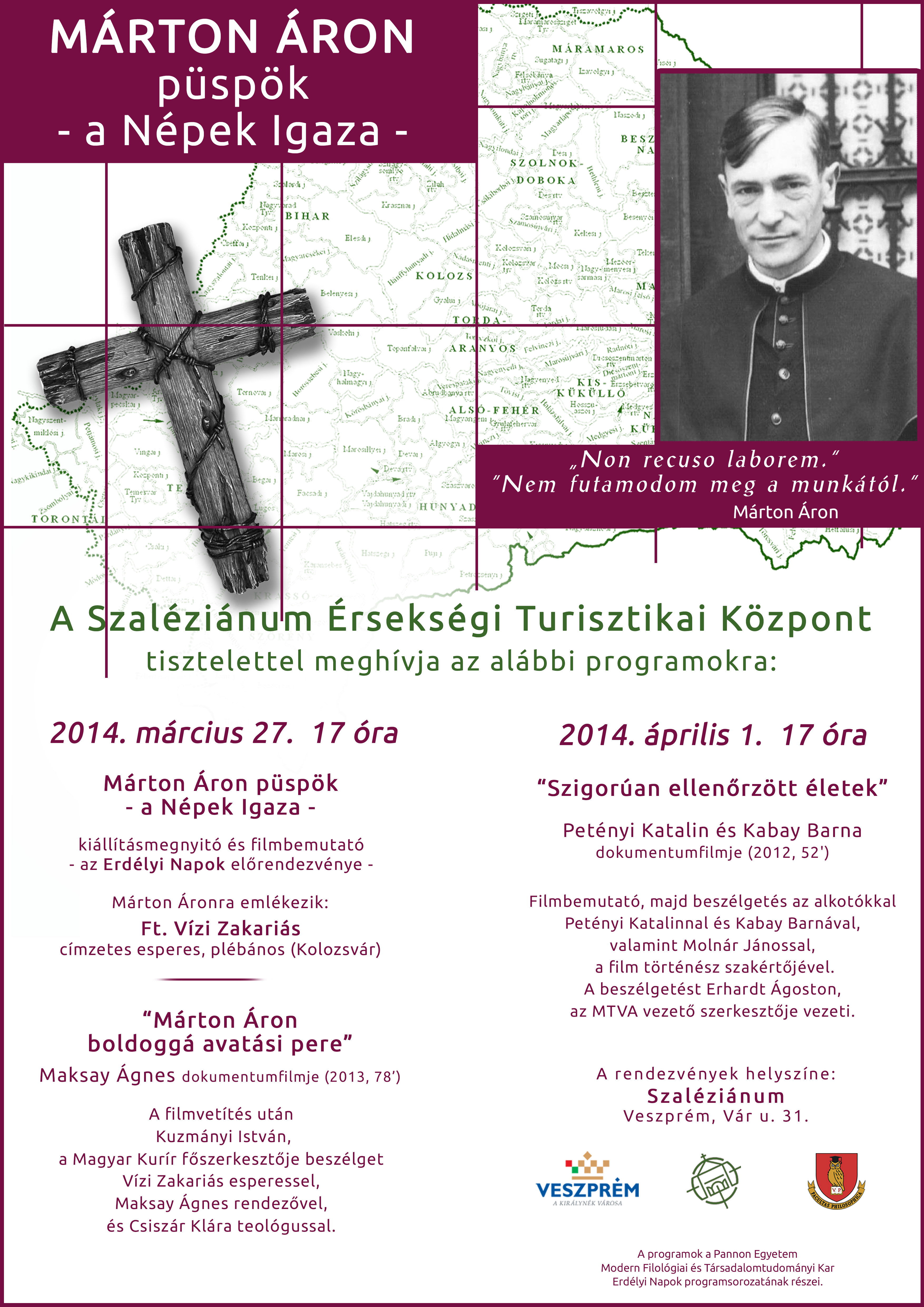 Az Erdélyi Napok előrendezvényeként, a veszprémi Szaléziánumban, kiállítással és filmbemutatóval emlékeznek Márton Áron püspökre, március 27-én, csütörtökön.