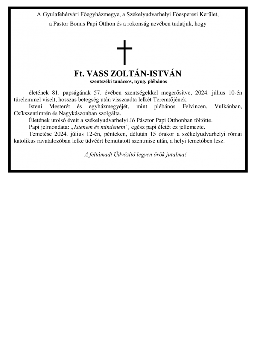 Ft. Vass Zoltán-István, szentszéki tanácsos