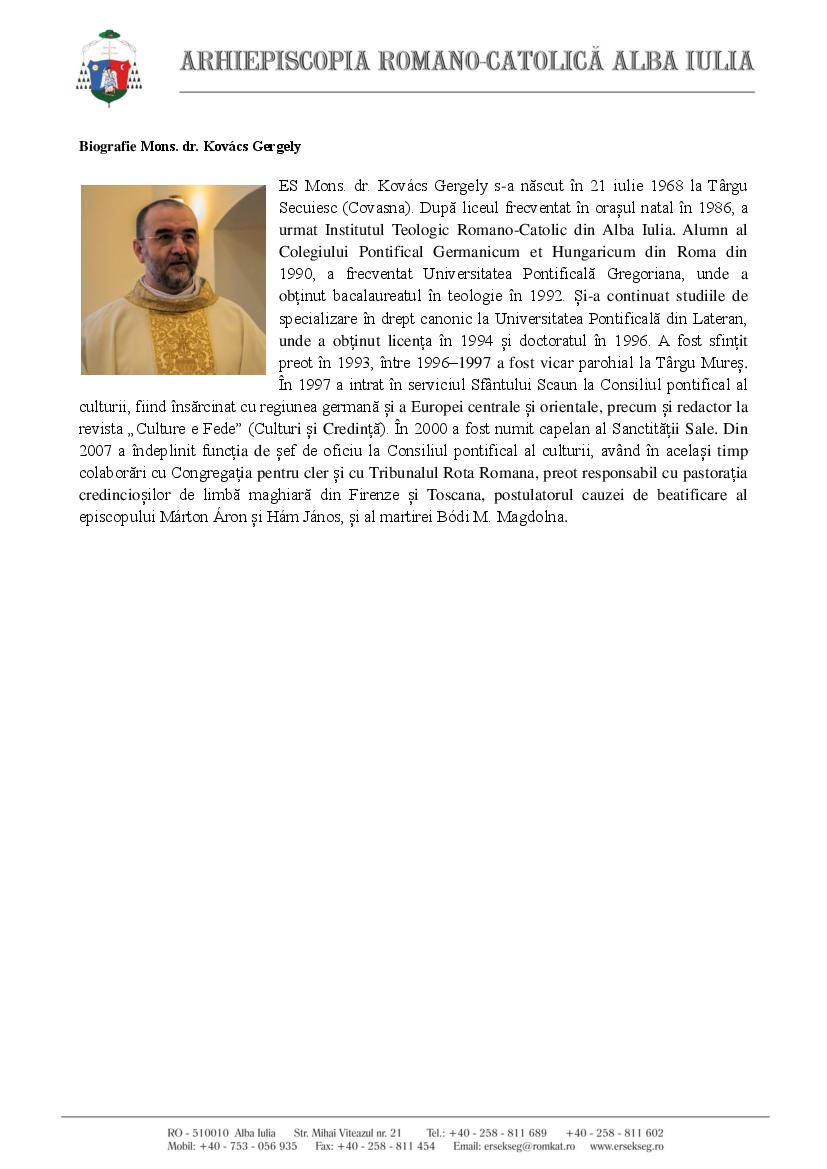 Biografie Mons. dr. Kovács Gergely