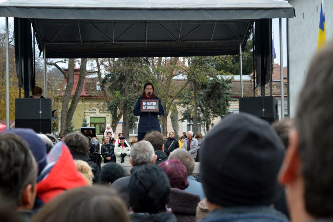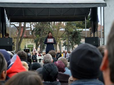 „Arma și armura noastră este cartea” – citând cuvintele lui Sütő András, Kelemen Hunor s-a adresat mulțimii în calitate de membru al Adunării Generale a Fundației Statusul Romano-Catolic și le-a cerut acestora să arate cărțile pe care le-au adus și pe care, la sfârșitul mitingului, le vor dărui școlii, în semn de solidaritate.
