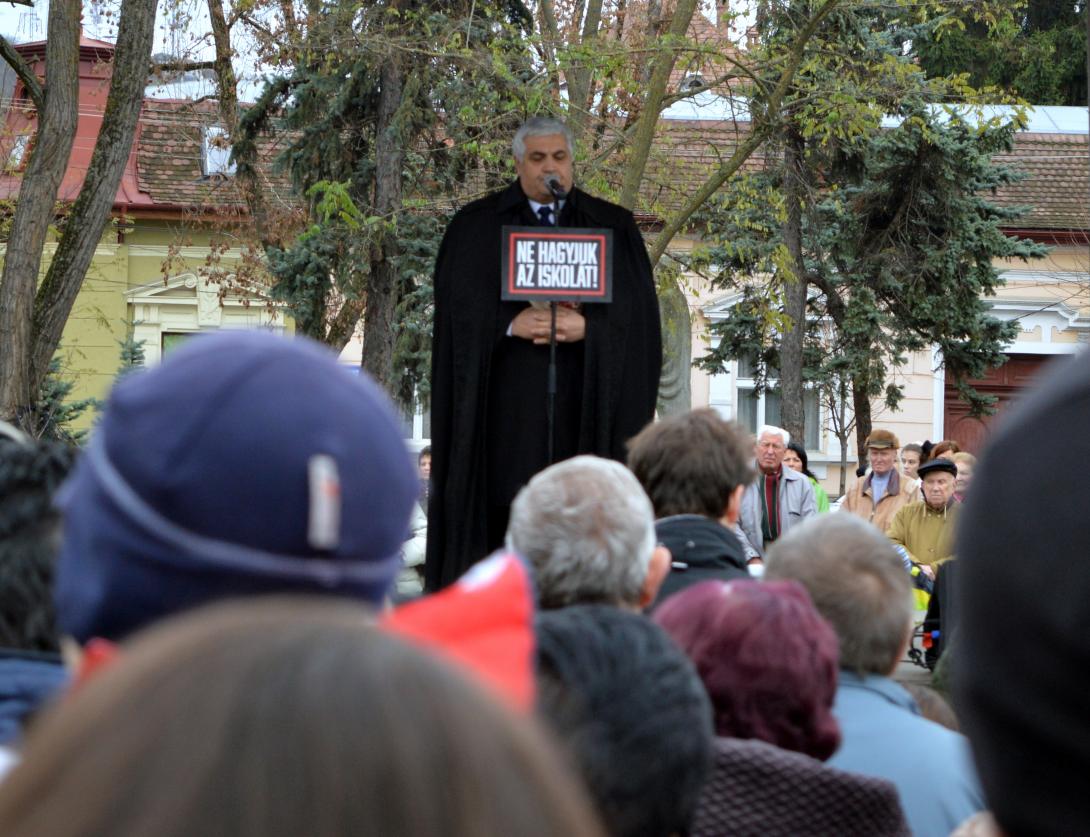 Dreptatea nu se caută în stradă, dar dacă totuși o facem, atunci există un motiv serios – a spus dr. Holló László, profesor universitar din Cluj, președintele Comitetului Director al Statusului Romano-Catolic, în alocuțiunea rostită cu ocazia mitingului de susținere a Liceului Teologic Romano-Catolic și a directorului dr. Tamási Zsolt József, care a avut loc astăzi, 12 noiembrie, sâmbătă după-amiaza, în centrul municipiului Târgu Mureș.